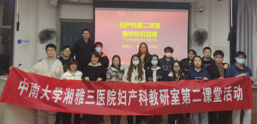 11月26日,中南大学湘雅三医院妇产科教研室李月燃、李瑞珍老师组织2020级临床医学五年制六组同学开展“趣味知识竞赛”第二课堂课外活动。