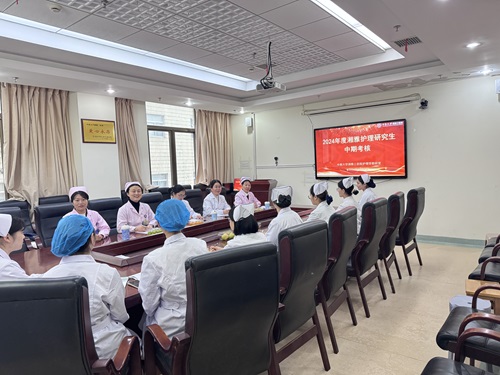 郭佳代表学院感谢医院与各科室对教学工作的支持与付出,肯定了医院护理教学工作,她表示实行中期考核制度是确保研究生培养质量的重要措施,既是对学生的考核,也是对教学工作的检验,希望专家们对考核中发现的问题及时交流,共同提高。随后,湘雅护理学院肖江龙及教学专家张静平分别对中期考核的具体要求和考核重点进行了说明和讲解。