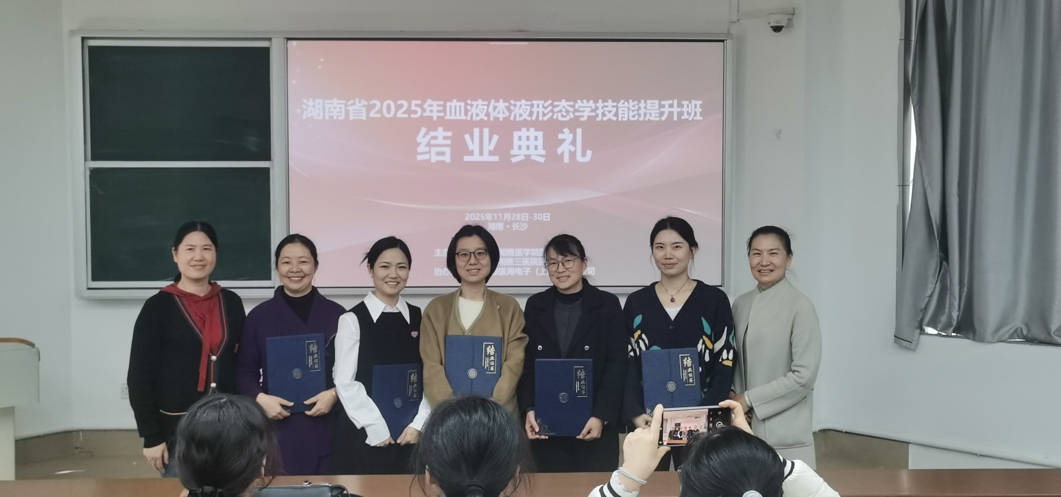 2025年11月30日,由中南大学湘雅三医院医学检验系及中南大学湘雅三医院检验科主办、希森美康医用电子(上海)有限公司承办的“湖南省首届血液体液形态学技能提升培训班”在湘雅医学院杏林校区成功举办并圆满落幕。本次为期两天的培训班旨在提升湖南省各医疗单位医学检验工作者在血液体液形态学领域的专业技能与诊断水平,为临床相关疾病的诊断提供精准诊疗依据。本次培训班吸引了来自全省各医疗单位24名优秀学员参加。