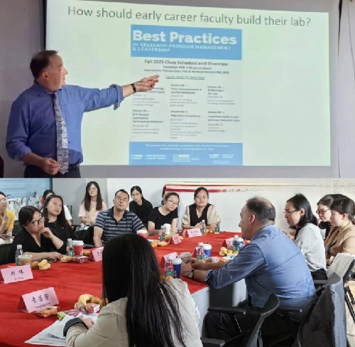 殷刚代表中南大学欢迎专家们的到来,并从地理位置、优势学科、师资力量和办学规模等方面介绍了中南大学的情况。他详细讲解了中南大学国际合作处的工作职能,分享了中外合作办学、国际化人才培养的成功案例。他希望,此次专家团的来访能成为加州大学戴维斯分校医学相关分院和湘雅三医院建立长期稳定合作关系的良好开端,学校国合处也将不遗余力地予以支持。