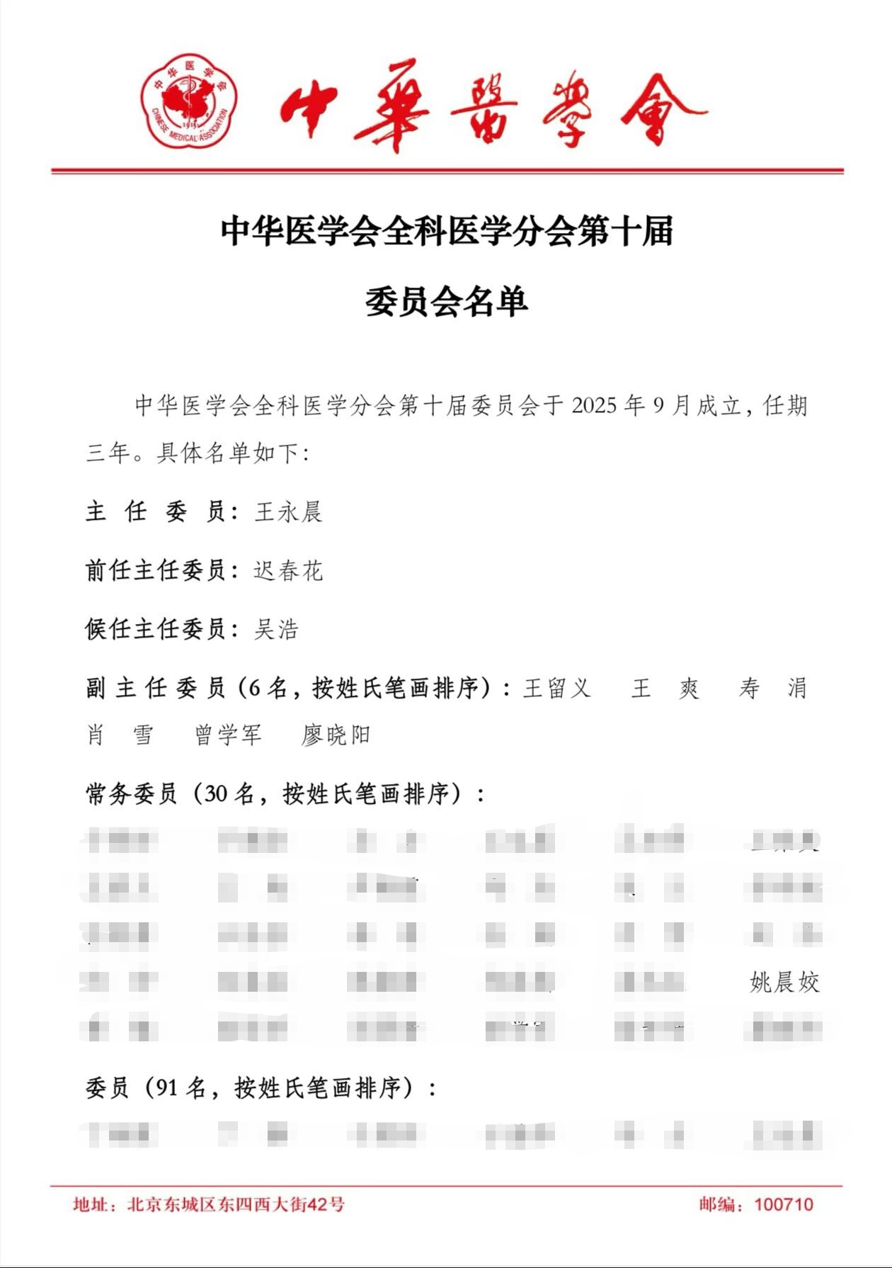 9月27日,在北京召开的中华医学会全科医学分会第十届换届选举会议上,中南大学湘雅三医院全科医学科主任姚晨姣当选为中华医学会全科医学分会第十届常务委员,成为湖南省唯一入选,也是首位获此殊荣的专家。这一重要任职不仅彰显了全国同行对湖南省全科医学事业的高度认可,也标志着湘雅三医院在全科医学学科建设与学术影响力方面迈上了新的台阶。