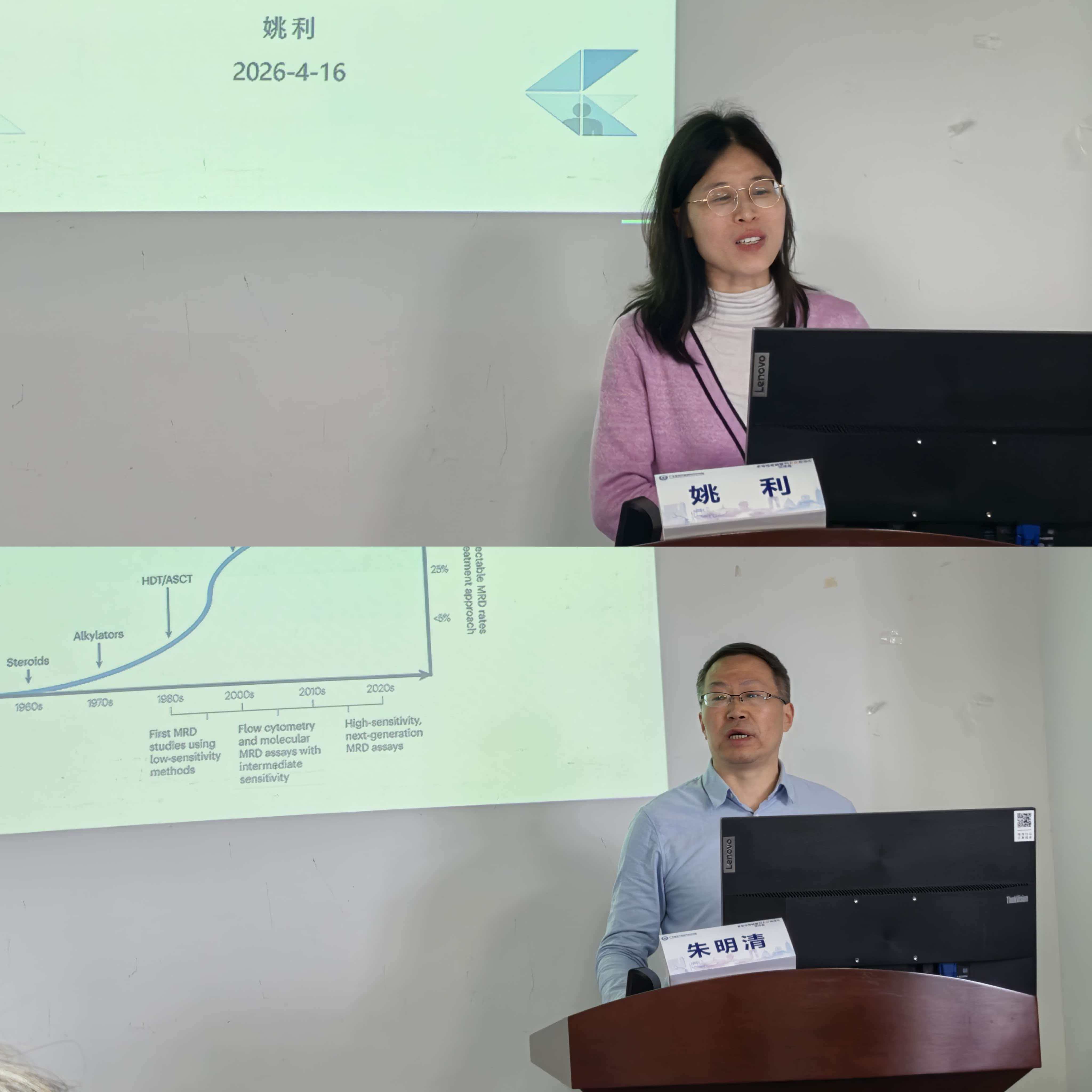 专题报告环节,苏大附一院朱明清教授以《MM MRD检测——流式细胞术》为题,介绍了二代流式技术的要点与价值;姚利教授围绕《MM MRD检测——二代测序》,分享了二代测序在高灵敏度、克隆演变识别等方面的优势。随后,双方专家围绕流式与高通量基因测序(NGS)如何选择、标本采集与送检标准化、跨院结果互认等问题展开讨论,形成了多项共识。