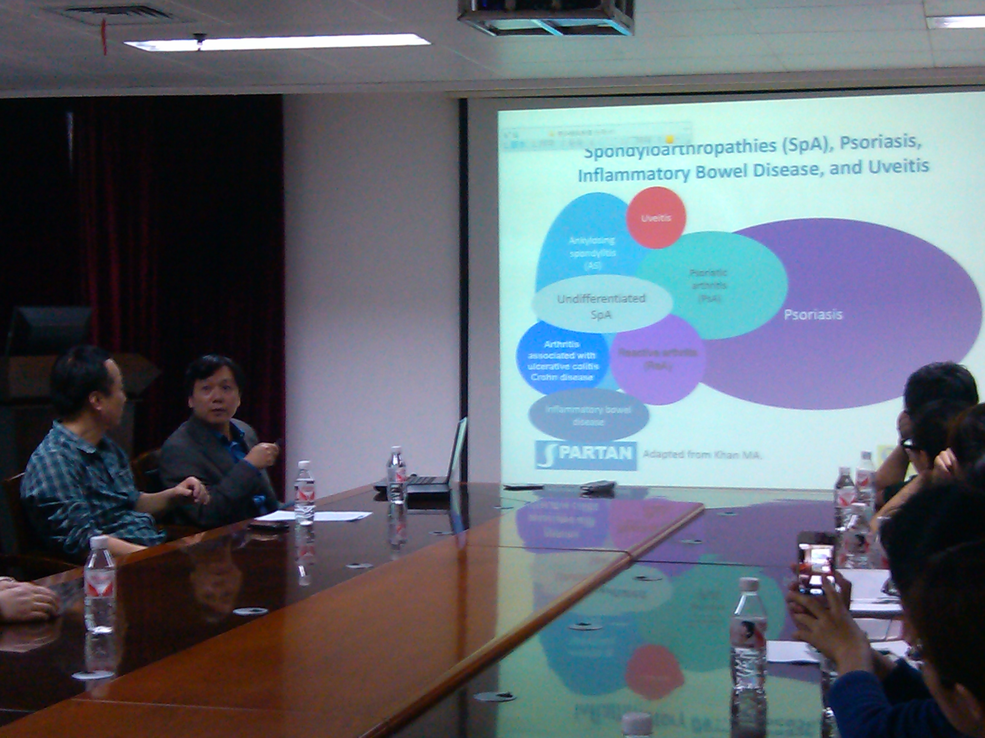 陶翔教授介绍了风湿免疫学领域的前沿知识以及脊椎关节病的新进展,并结合自身多年的工作经历,在强直性脊椎炎的诊断和治疗方面给予了详尽的指导意见,拓展了医生和研究生的知识面,让每位聆听者受益匪浅。在提问环节,张浩主任和研究生积极踊跃,提出了自己困惑和感兴趣的专业问题,陶教授都一一耐心作了解答,大家受益良多。