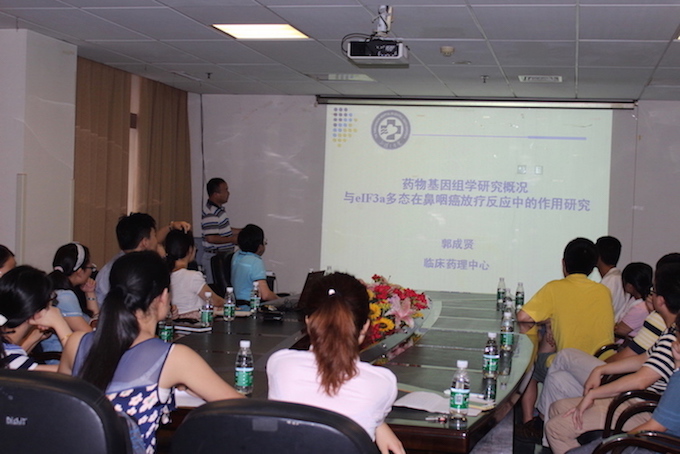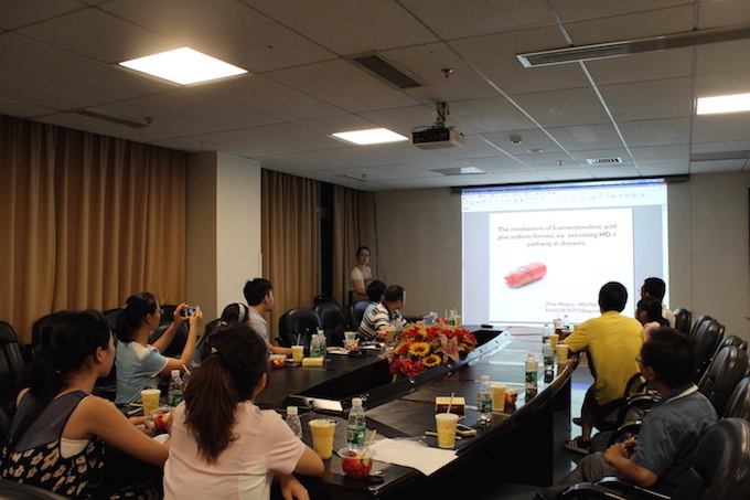 在青科协执行主席彭程主持下,来自临床药理中心的郭成贤博士做了题为“药物基因组学研究概况与eIF3a多态在鼻咽癌放疗反应中的作用研究”的报告,试图回答如何量体裁衣地为患者进行个体化治疗这一问题。之后,来自儿科的赵明一博士做了题为“5-ALA联合SFC在疾病中的应用及分子机制研究”的报告,对5-ALA(5-氨基乙酰丙酸)在疾病的保护作用机制进行探索。