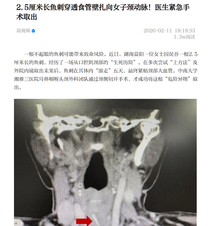[上一篇] 长沙晚报网页版:[掌上长沙]鱼刺在女子体内...