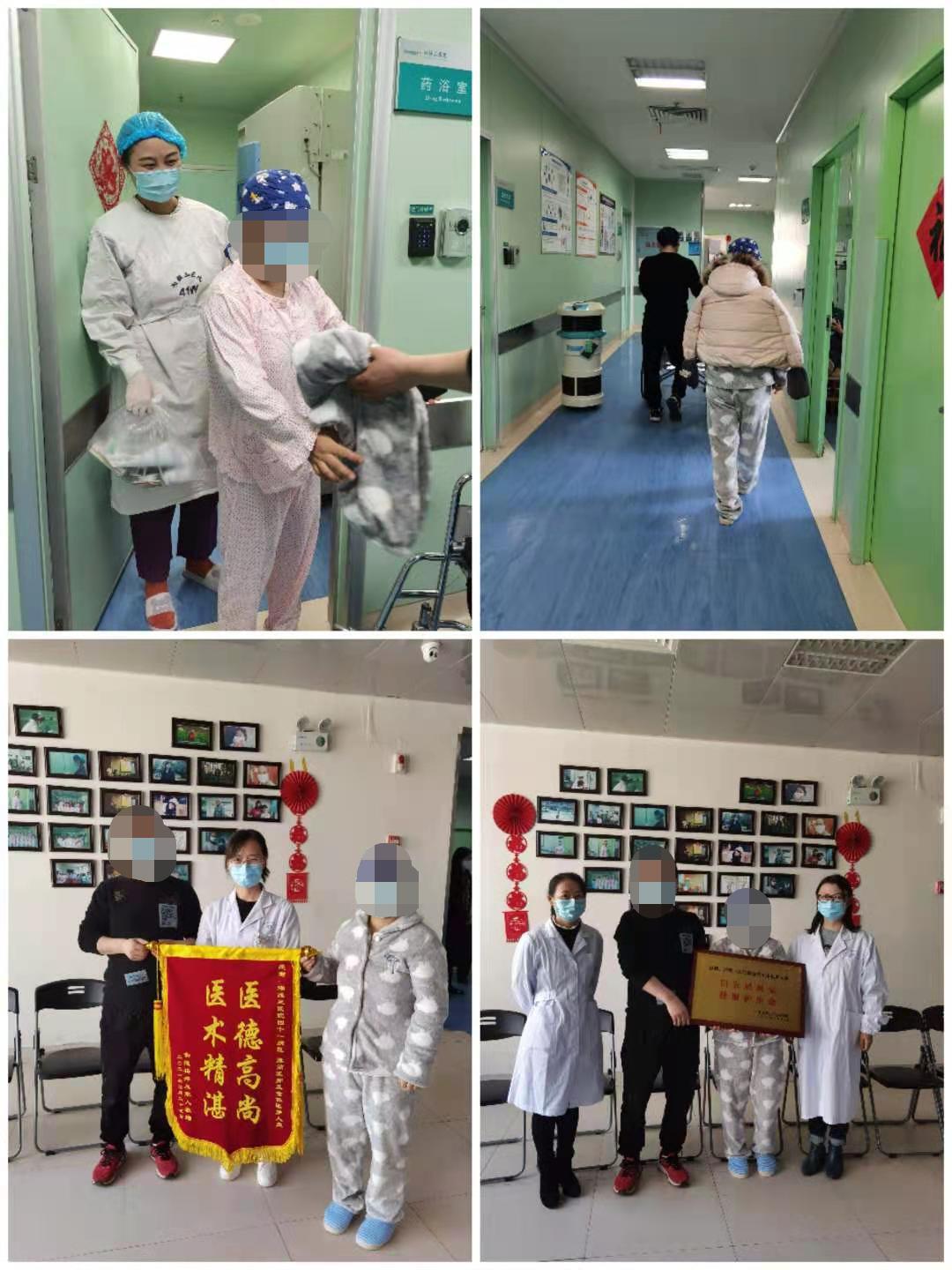 图5.阳女士迈着轻盈的步伐走出移植仓,分别为血液内科及输血科工作人员表达谢意
