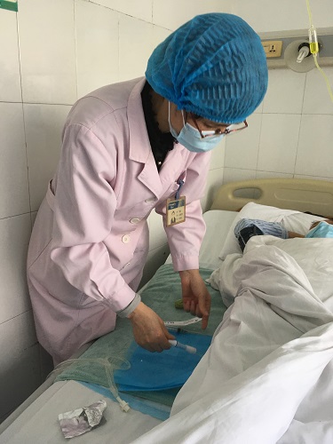 在与患者的沟通中,张浩教授与其腹膜透析团队得知,患者老家偏远,血液透析机器数量少,无法预约机器,在多方打听下,了解到中南大学湘雅三医院腹膜透析做得非常不错,遂前来求治。当被告知腹膜透析需要居家执行操作,张嗲嗲在双目失明的情况下操作有困难时,张嗲嗲的老伴邓娭毑非常坚定地告诉张浩教授,为了能陪伴在嗲嗲的身边,能让嗲嗲的余生不再有太多的病痛折磨,她愿意学会腹膜透析的所有操作,每天帮嗲嗲进行腹膜透析换液。鉴于张嗲嗲的客观条件限制和邓娭毑的全力支持,考虑到以前也有失明患者行腹膜透析的案例,张浩教授最终决定遵从患者自身的意愿,结合“辅助性腹膜透析”的理念,对张嗲嗲进行腹膜透析置管手术。