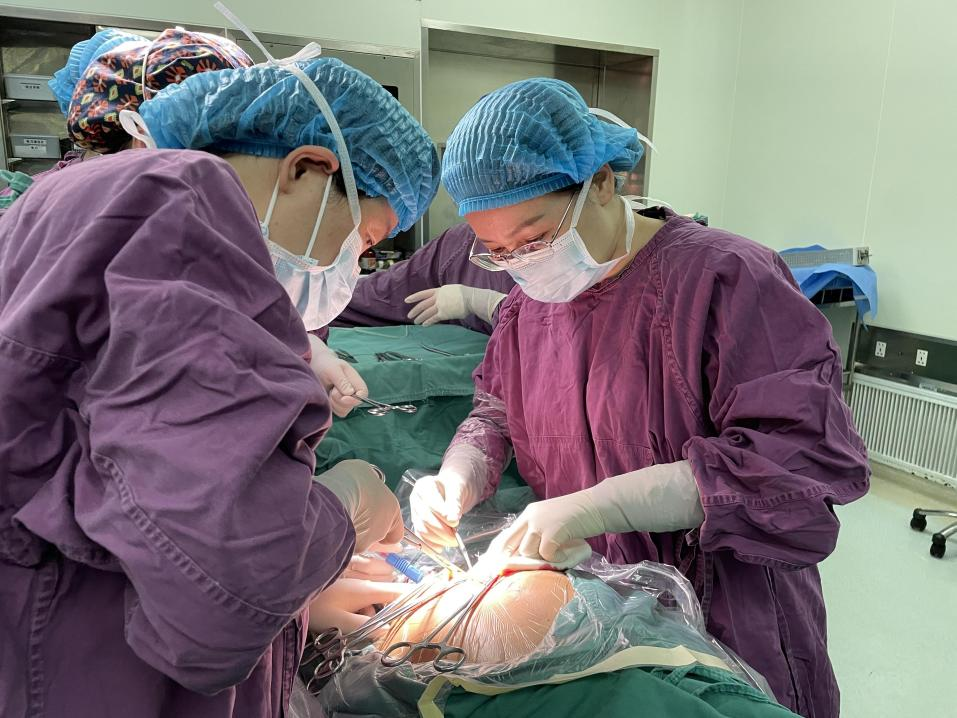 10月3日上午8时许,一切准备就绪。多学科救治团队成员齐聚手术室,由产科主任米春梅主刀,产科副主任程春霞、主治医师王楠、总住院医师龙买连配台手术;麻醉科主任廖琴带领麻醉团队进行麻醉;术前泌尿外科医生进行了膀胱镜检及双侧输尿管支架置入术,以减少术中膀胱及输尿管损伤的几率;新生儿、血管外科、妇科、输血科严阵以待,在充分的准备下,手术顺利进行,术中发现彭女士子宫下段明显膨隆,胎盘植入并穿透子宫肌层,膀胱黏连,表面遍布怒张血管……在团队之间的密切配合下,彭女士顺利娩出一活男婴并很快止血,术中仅出血1000ml,成功保留了子宫。
