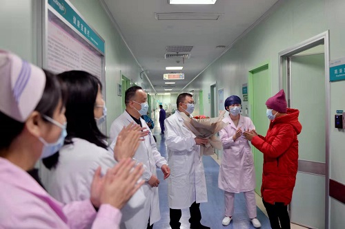据主治医生李颖介绍,今年2月,49岁的霍女士因“发现双乳肿块1月”就诊于湘雅三医院乳甲外科,经过一系列深入细致的检查,最终诊断为全身10多处器官骨骼均有侵犯的“弥漫大B淋巴瘤”四期,治疗难度大,预后差。转入血液内科后,经过8次大剂量化疗联合靶向药物治疗,病人双乳肿块及全身肿大的淋巴结逐渐缩小,病情接近完全缓解。但在自体造血干细胞移植准备阶段,病情出现新的进展,不但多处肿块复发,还出现大量血性胸腔积液,病程转入复发难治阶段,治疗难度进一步加大。经全科讨论,果断决定迅速启动血液科最有优势的CAR-T细胞治疗,全力挽救患者生命。9月底,患者输注了CD19-CAR-T细胞后出现了肿块局部炎症因子风暴,经过临床医生缜密观察和治疗措施的精准切入,最终病情恢复平稳。清除了表达CD19的瘤细胞以后,再次进行肿块活检,又捕捉到一群弱表达CD20,免疫逃逸漏网之鱼的淋巴瘤细胞。为了根除潜藏的隐患,最大程度保障患者生命安全,血液科团队实施了第二次CD20-CAR-T治疗联合自体干细胞移植。患者于11月24日进入移植仓,12月1-2日行自体造血干细胞移植,12月6-7日输注CD20-CART细胞。今日顺利出仓,医院领导到场慰问,希望她后期继续与医生密切配合,守住移植和免疫治疗成果,争取最佳疗效。