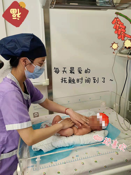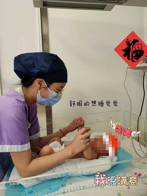 这段日子,对于我是个漫长而艰难的过程,还好NICU里有薄涛老师带领的团队,通过他们耐心积极的治疗以及细致又有爱心的护理,让我慢慢恢复健康。同时,有一个很爱我的爸爸妈妈,每次妈妈来NICU门口看我时,她说,我家宝宝真不乖,等以后能进去做家庭护理了,第一件事就要打我的小屁屁。可是,当妈妈第一次来到我的身边时,她轻轻的摸了摸我的手,生怕弄疼了我,之后每一次都用温暖的怀抱给我信心和力量。