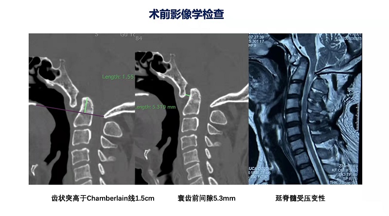 患者“谷哥”(化名)来自张家界,3年来不明原因地出现四肢麻木乏力,胸部有束带压迫感,行走不稳,近半年来症状明显加重,大小便也出现功能紊乱,严重影响生活工作。求医心切的”谷哥”慕名找到湘雅三医院颅椎外科专病门诊,颅椎组组长李劲松副主任医师接诊后,诊断为:A型颅底凹陷症,即颅底凹陷症并寰枢椎脱位。这种疾病危害性极大,相当于蛇的“七寸”被掐住了,李劲松医生建议尽快手术治疗。