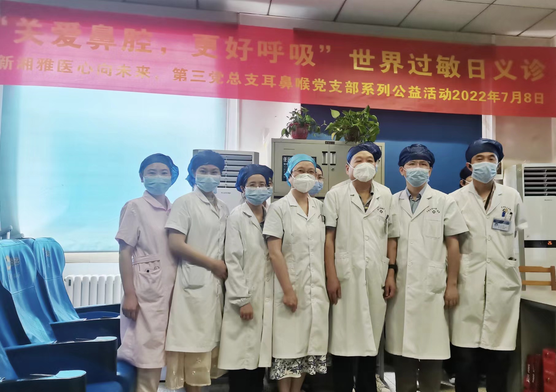 2022年7月8日是第18个世界过敏日,中南大学湘雅三医院耳鼻咽喉头颈外科在马艳红教授带领下开展了以“关爱鼻腔,更好呼吸”为主题的惠民义诊活动。