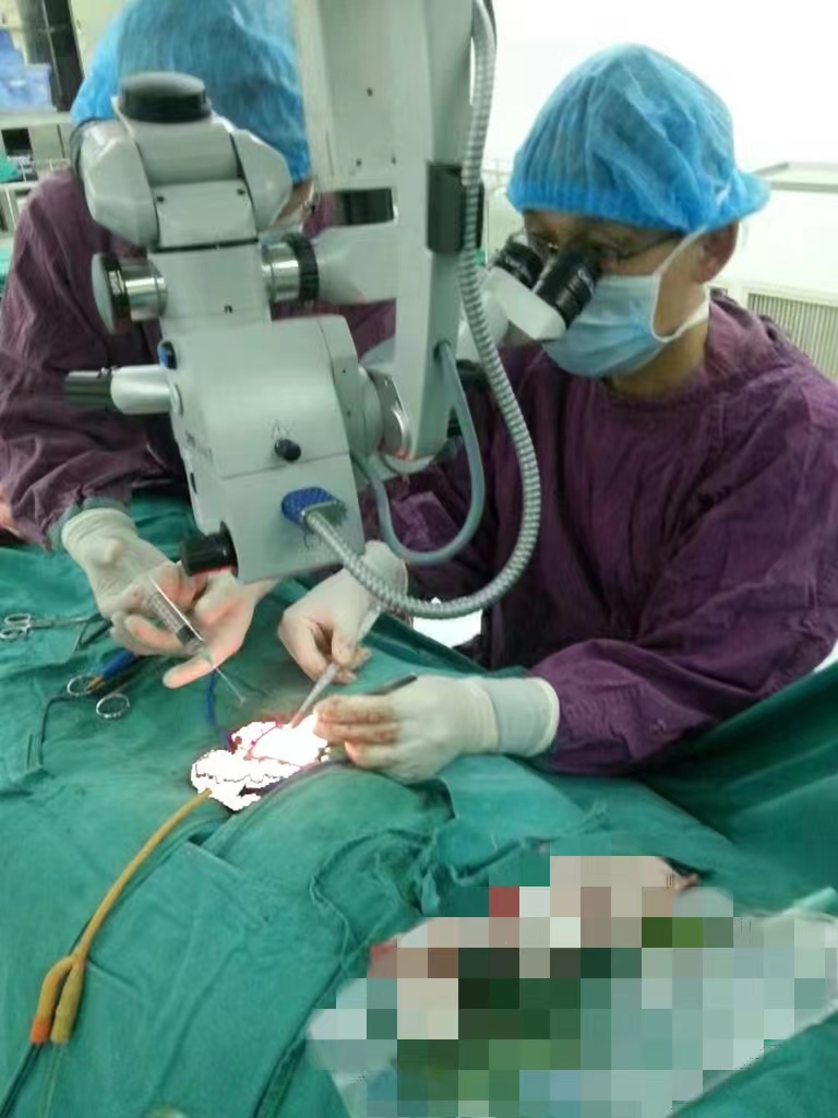 泌尿外科总住院医师周磊了解患者基本情况后予初步应急处理。泌尿男科亚专科组副主任医师阳建福手术团队迅速就位,快速完善术前准备后,阳建福主刀急诊为患者施行了显微镜下阴茎外伤清创+阴茎离断再植手术。术中争分夺秒,利用手术显微镜放大术野,找到阴茎背动脉及阴茎背深静脉断端,在显微镜下分别将阴茎背深静脉和背动脉行端端吻合。将尿道及阴茎海绵体断端修剪平整后,分别行尿道端端吻合及两侧阴茎海绵体端端吻合,历经3小时,手术顺利完成。患者于7月21日出院,术后恢复良好。