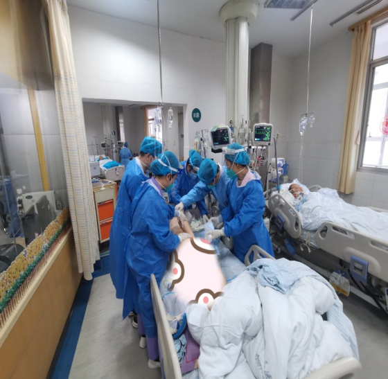 俯卧位通气、血滤、ECMO、紧急抢救、基础护理……每一项工作都离不开护士兄弟姐妹们的付出。MICU的护士们相互照顾,相互鼓励,共同协作,救治了一批又一批的重症患者。唐迎际护士长身体未恢复就带病返岗了,积极协调人力,加班加点,给病倒的同事替班。廖江山同志是大家学习的楷模,平时工作细致,乐于助人,2022年支援了上海、海南、新疆等地,才援疆回来的他,来不及修整,就第一时间回归岗位。高年资护士张丹老师,在人力周转不过来时,自己坚持上完白班接着上晚班,只想把休息时间留给症状严重的同事去恢复。其他护士只要不高热都是以最快的速度回归岗位,每天高强度、长时间的工作,确实都是咬紧牙关在坚持。