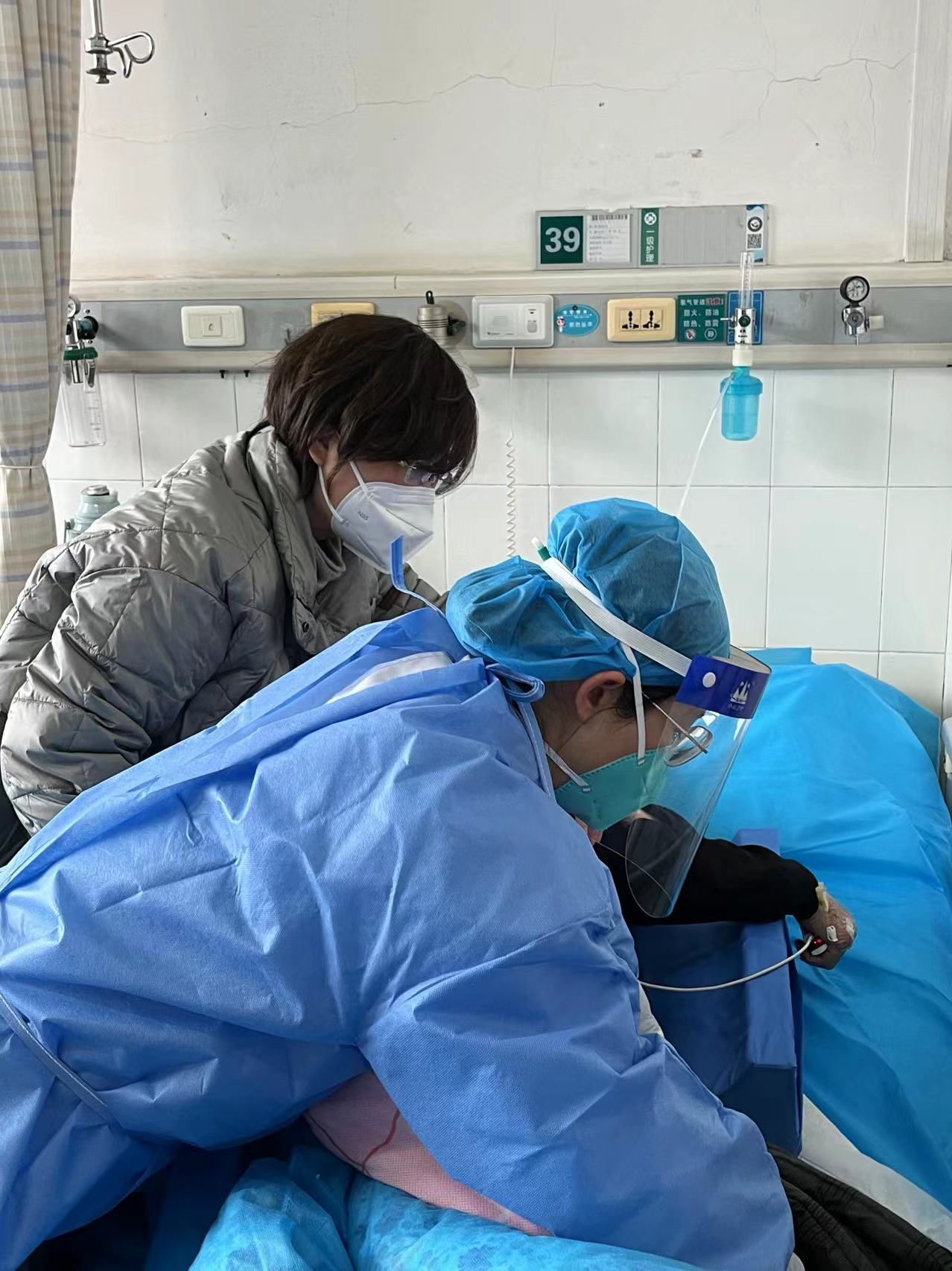 亚重症新冠病房成立伊始,正处于第一波新冠感染患者快速增长期,院内院外寻求床位的电话络绎不绝,各位医护人员均深感压力重大。其中急诊科是全院救治新冠患者的桥头堡,如果不能及时将新冠患者收治入院,必将对全院的救治工作造成严重阻塞,最终受害的还是广大群众。病房总住院每天均前往急诊科会诊患者,力争及时将患者收进病房,减轻急诊科的压力。然而,正是忙碌的关键时刻,出现了医生减员情况。有两位医生在工作的第一天就感染了新冠,大家深知要与时间赛跑,不能落在病毒之后,在身体顶得住的情况下,尽可能多的收治病人。谢丽华主任一边积极寻求医院增派人手,一边合理安排感染同事尽可能多的休息。然而谢丽华主任也很快感染了新冠病毒,但她仍在身体允许的情况下来病房查房。随后陆陆续续有人倒下,最困难的时候只有4位医生能到岗,最终所有医务人员均在两周内感染新冠。尽管出现了严重的减员,但科室全体在岗医生主动取消元旦休假,团结一心,全力以赴救治新冠患者。由于亚重症新冠病房由原肿瘤科改造而成,各种抢救急救设备不如ICU病房齐全,监护设备也相对匮乏,郭娜护士长便向各兄弟科室借用各种呼吸急救设备,同时病房医护人员也积极巡查患者,确保能及时发现患者病情变化,确保患者安全。医务部针对病区医护减员以及急救设备偏少情况,积极协调人力物力,不断充实亚重症新冠病房的救治能力。