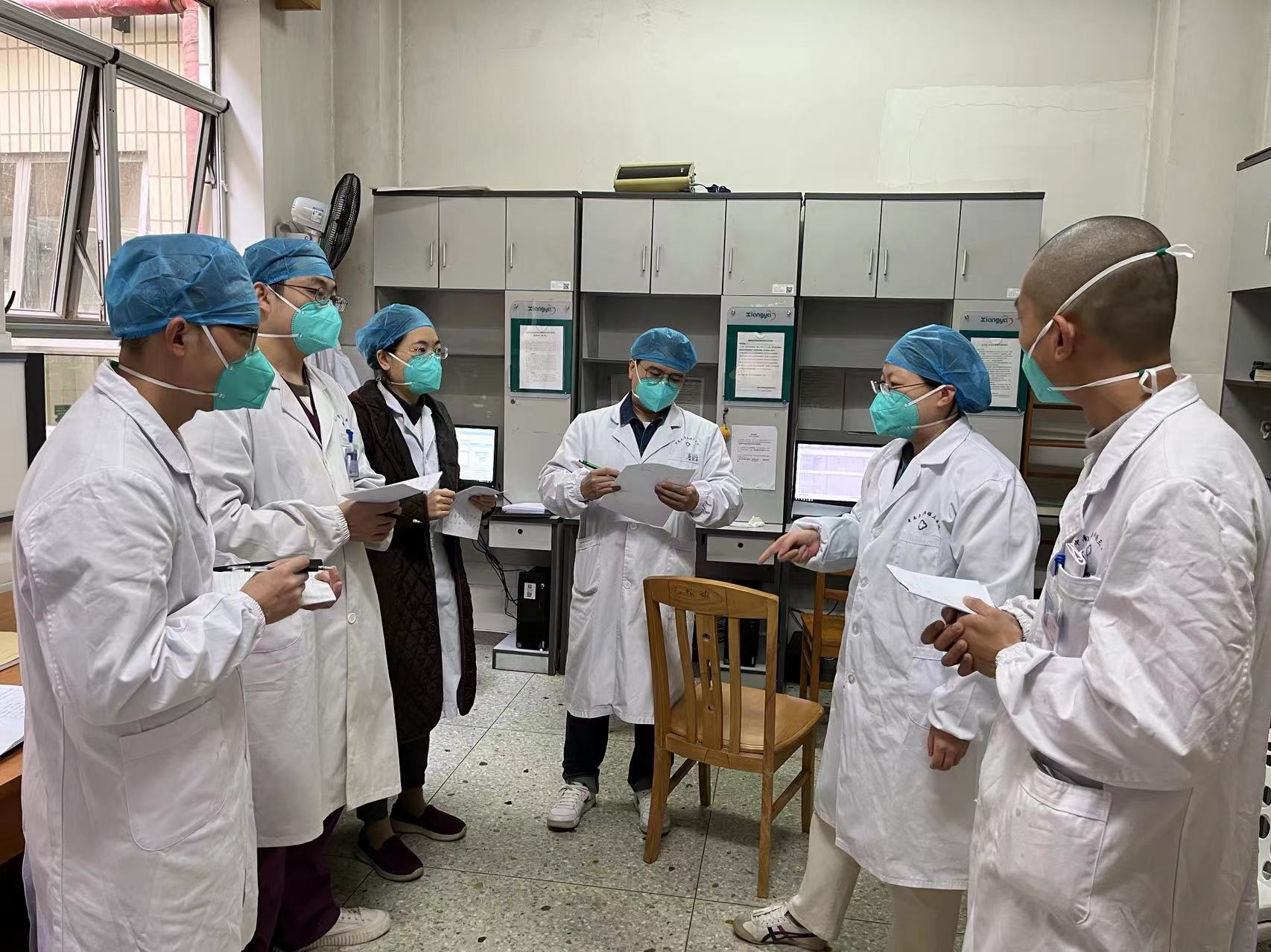 病区主任谢丽华是一名老党员,作为呼吸与危重症医学专家,刚刚结束了邵阳方舱医院的救治工作,还没来得及休息,就作为病区负责人牵头成立了亚重症新冠病房。心内科李安莹、麻醉科全承炫、内分泌科刘升平均于2020年初奔赴武汉参加过抗疫,经验丰富,麻醉科陈功刚刚结束邵阳方舱医院的救治,就转身投入到新的战场。阳石坤、郭一航、鲁安杰等其他医生均是主动请缨参与亚重症新冠病房患者的救治工作。12月15、16日,谢丽华主任连续两天带领大家熟悉新冠救治流程,强化感控防治,分配工作任务,各位医生也在积极学习最新指南,练习穿脱防护服,积极应对即将到来的新挑战。当16晚病房开始收治首批18例亚重症新冠病人时,大家胸有成竹,积极主动,配合默契,一直忙到凌晨2点才完成首批全部病人的收治工作。在病房成立初期,共产党员以身作则,冲锋在前,体现了共产党员先锋队的作用。