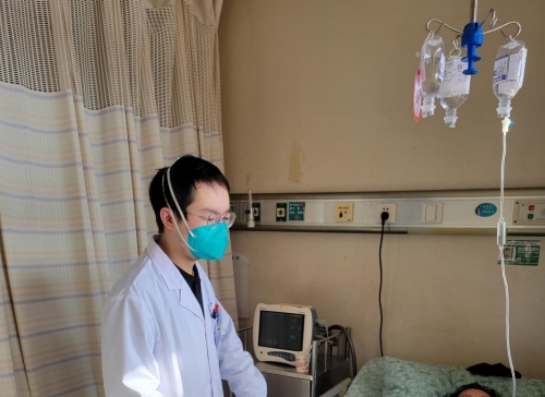 潘柏宇同学是2020级研究生,感染新冠还未痊愈的他仍然每天早早来到病房,参与到救治新冠病人的工作中。面对80多岁高龄感染新冠合并呼吸困难、阿尔兹海默症、严重酸碱失衡的复杂病人,潘柏宇同学没有抱怨,仍然细心、耐心的守护病人健康。他说:“老师们都在带病上班,作为年轻一代的医生,此时此刻,我们更应当挺身而出,勇于承担责任,这对于我们既是砺炼也是考验”。