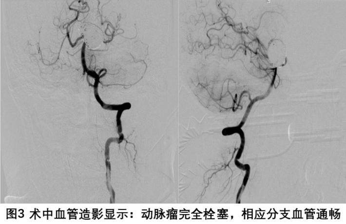 在神经外科王知非主任医师、杨金福主任医师指导下,姜交德副主任医师、卢韶华副主任医师和冯亮医师组成的脑血管病介入治疗手术团队经过周密的术前准备,于3月22日成功给患者实施了Y形支架辅助下基底动脉尖端巨大动脉瘤栓塞术,将这一枚“刀尖上的危险炸弹”拆除。随后,在17病区肖丽护士长带领的护理团队的精心护理下,患者在术后一周左右顺利步行出院。