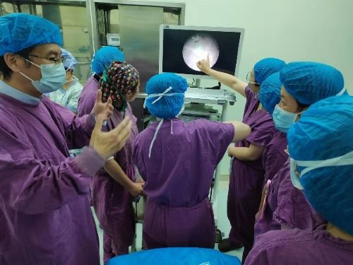 落户当天,专业技术人员在完成胎儿镜及相关配件组装及调试后,现场还对胎儿医学中心的医护团队进行了胎儿镜操作技术的演练和培训。