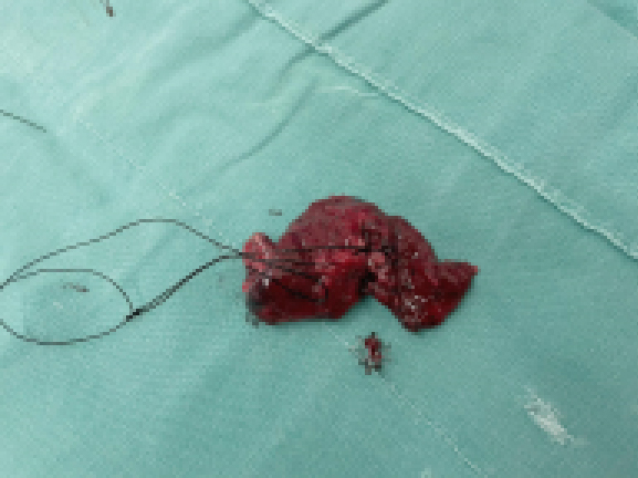图五:H-marker和结节的位置与规划一致,术后切除的标本,可以清晰的看到灰白色癌性结节已被精准切除