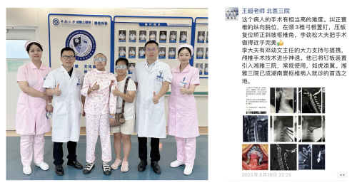 邓幼文指出:“一例又一例高难度颅椎手术的成功开展,标志着科室颅椎组手术技术日臻成熟,随着王超教授发明的钉板系统正式引进入院,将来一定可以给更多的上颈椎患者带来福音。”著名上颈椎专家北医三院王超教授评价此病例写道:“李劲松大夫将此例手术做得近乎完美,在邓幼文主任对颅椎外科的重视与大力支持下,湘雅三医院已成为湖南寰枢椎病人就诊的首选之地。”