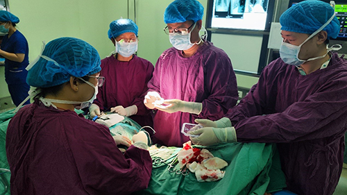 图为黄东主任、胡蓉副主任完成永久刺激器的置入