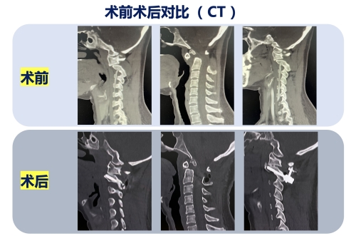 家住长沙星沙的张阿姨一个半月前,突然感到头部疼痛、嗜睡,后来颈部开始出现疼痛,在打喷嚏或咳嗽时,四肢有触电样表现,不敢活动颈部,在家中观察后症状仍迁延不愈,辗转多家医院,行MRI、CT检查后考虑为齿状突发育异常并寰枢椎脱位,在专科医生的推荐下,慕名找到湘雅三医院脊柱外科邓幼文主任,邓幼文主任接诊后,诊断为:高位颈脊髓病、游离齿突并寰枢椎关节脱位,建议手术治疗。