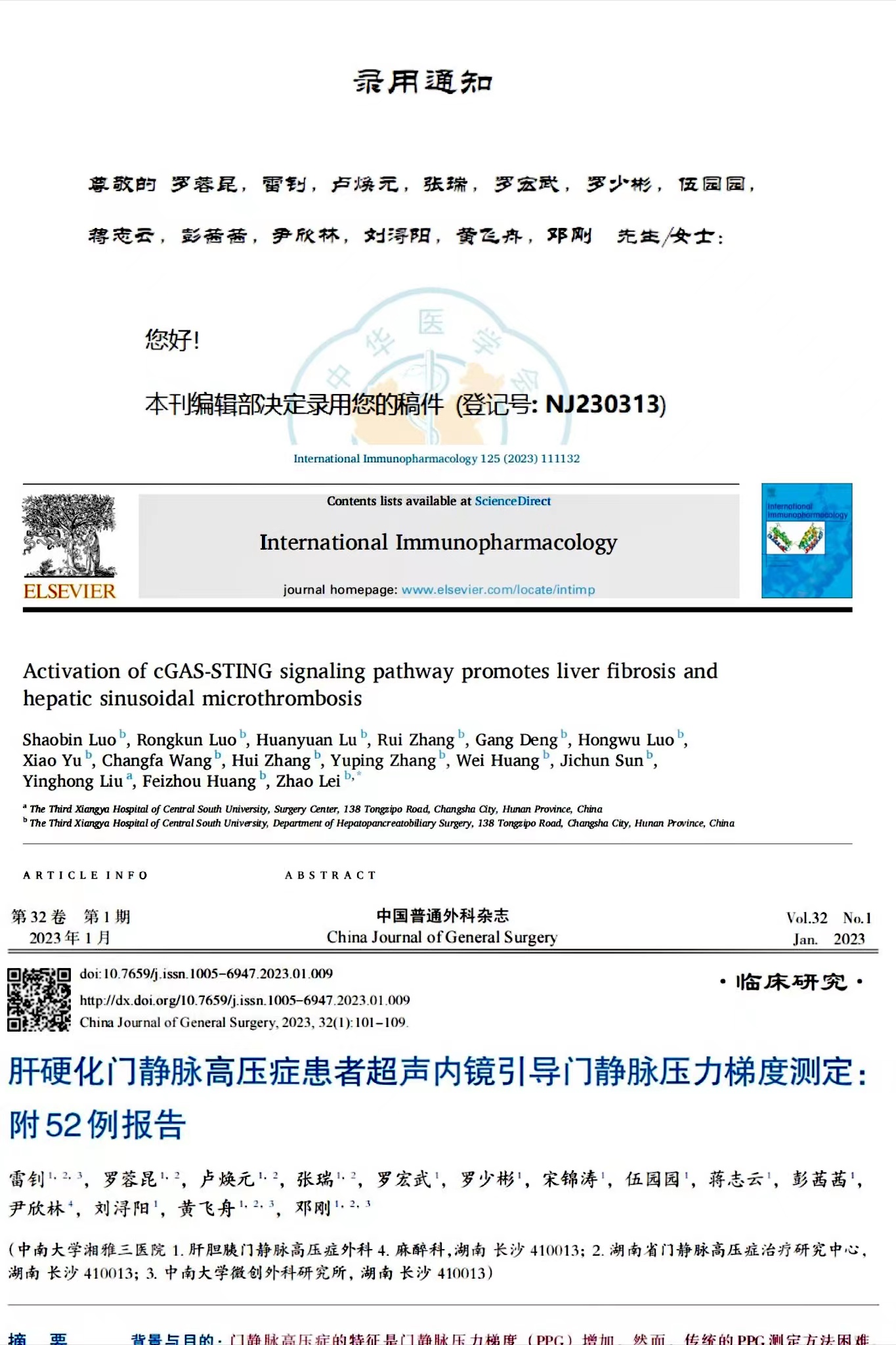 该技术的临床与基础研究成果已相继发表在国内外知名学术期刊《中国普通外科杂志》、《中华消化内镜杂志》(已录用)、《International Immunopharmacology》(JCR1区),获得国内外同行的高度关注。该技术的成功运用,标志着门静脉高压症诊疗技术领域的又一重要性突破。