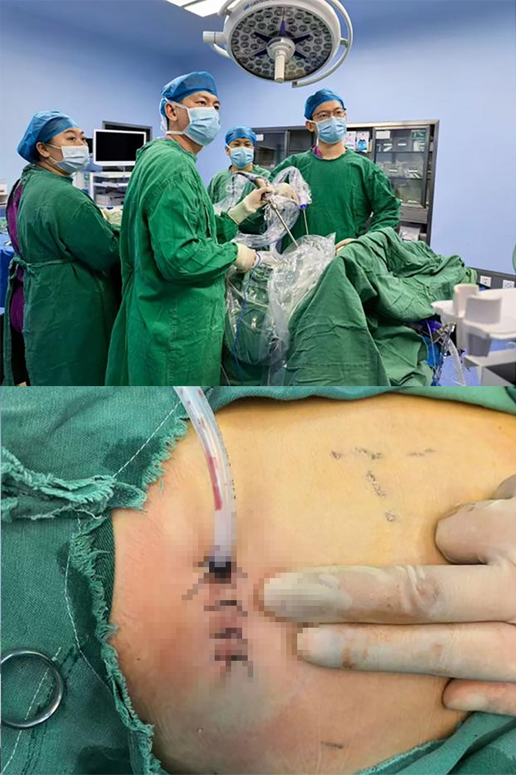 这位年过七旬的奶奶,体检时通过低剂量螺旋CT筛查发现左上肺有一个直径约2 cm的实性结节,考虑恶性肿瘤,手术指征明确。但患者同时合并有冠心病,若采用传统腔镜手术,手术创伤大、术后疼痛剧烈、恢复期长,对于年事已高的患者而言,将是不小的考验,因此,创伤更小的单孔胸腔镜手术无疑是更优选择。
