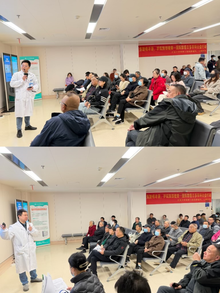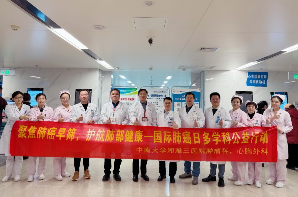 11月17日,是“国际肺癌日”。当天,中南大学湘雅三医院肿瘤科以及心胸外科的专家团队在门诊开展“聚焦肺癌早筛,护航肺部健康”主题义诊活动。本次义诊通过免费诊疗、健康检测与科普讲座相结合的形式,将专业医疗服务送到群众身边,助力提升公众肺癌早筛意识与肺部健康管理能力。本次活动既是践行以人民为中心思想的具体举措,也是推动癌症防治工作惠及民生的实际行动。