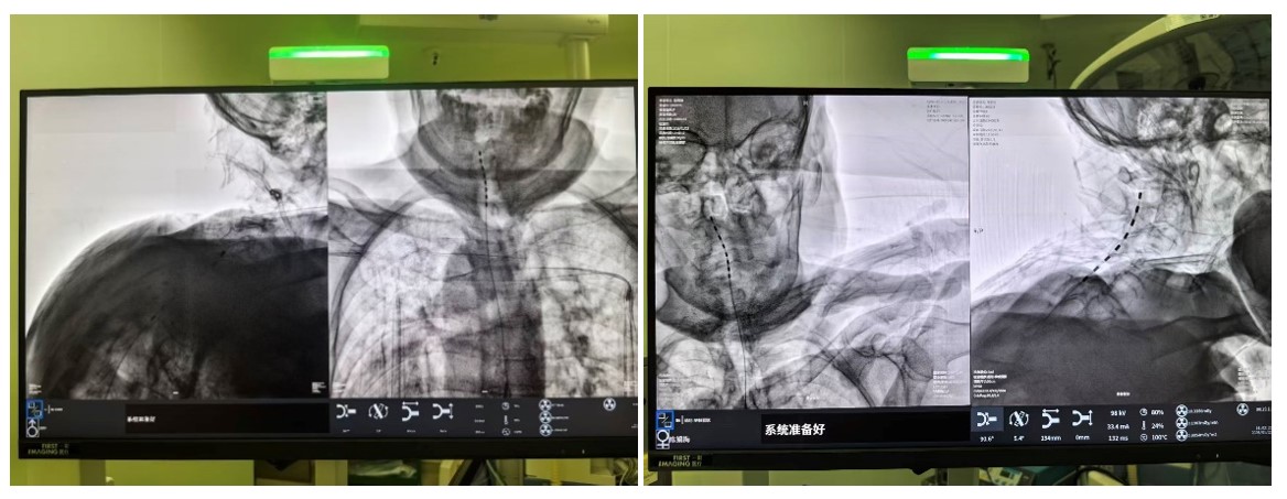 面对高龄且身体机能脆弱的患者,中南大学湘雅三医院疼痛科胡蓉教授团队经过严密评估,最终于1月中旬为两位老人实施了 “局麻下C臂引导下脊髓电刺激术(SCS)植入术” 。这项被称为神经调控领域“减痛黑科技”的技术,其原理在于:将微细电极植入脊髓硬膜外腔,通过发出微弱电脉冲,在疼痛信号传向大脑的路径上进行“精准拦截”,从而阻断痛感。