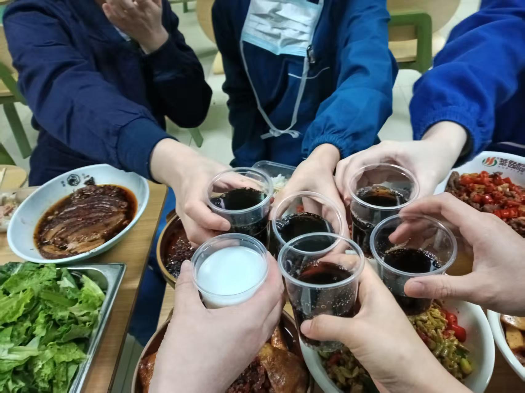 傍晚,好不容易迎来急诊的间隙,大家围坐在餐厅,护士长苏红辉老师已经提前为大家准备好了“年夜饭”。匆匆吃过“年夜饭”,大家又迅速投入到紧张的急诊手术中。