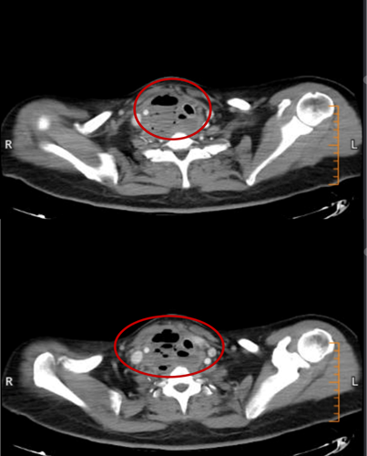 2月15日与20日,当整座城市沉浸在辞旧迎新的欢声笑语中,两位病情凶险的颈部深部脓肿患者先后被推入耳鼻咽喉头颈外科。他们都有多年糖尿病病史,春节期间饮食不规律、作息紊乱、血糖波动大,让原本隐匿的感染如野火般迅速蔓延。其中一位患者的感染已突破颈部间隙,如藤蔓般向下侵入纵隔区域——那里是心脏、大血管、气管的“交通枢纽”,是人体最脆弱的生命禁区之一。CT影像上,脓肿中密布的气腔像一个个危险的信号,气管被严重受压,每一次呼吸都变得艰难。文献数据冰冷而沉重:颈深部脓肿并发下行性纵隔炎,病死率高达40%~70%。时间,从未如此紧迫。