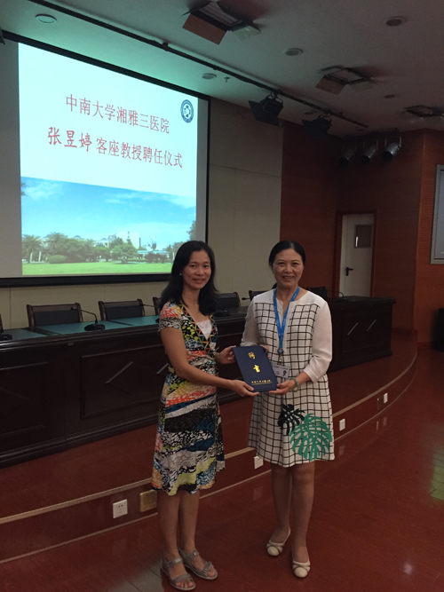 7月8日下午,美国匹兹堡大学公共卫生学院张昱婷副教授受聘为湘雅三医院客座教授。聘任仪式在外科楼2楼学术报告厅举行,由湘雅三医院朱晒红副院长主持,党委书记罗爱静为张昱婷教授颁发聘书。人力资源部、国际交流与合作部、科研部等相关职能部门负责人,部分临床科室主任、医护人员、管理干部参加了会议。