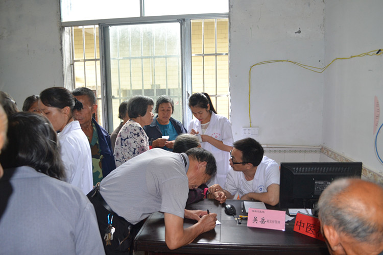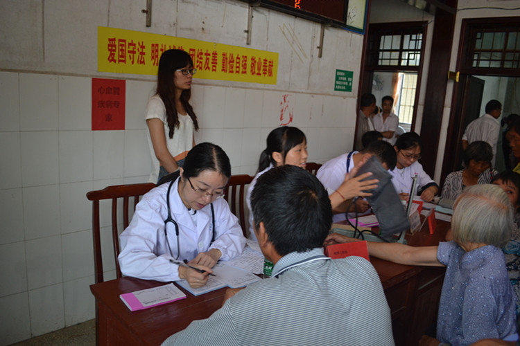 启动仪式后,湘雅三所医院13名专家在当地卫生院开展了义诊活动,湘雅三医院党委副书记、工会主席、全科及心理学专家邓云龙教授,农工党湘雅三医院支部副主委、消化内科副主任王芬教授,农工党党员、中医科副主任吴岳教授3位专家参加义诊。闻讯赶来的当地居民挤满了卫生院,专家们一边仔细询问他们的身体状况,针对身体情况给予相应的意见,并免费发放了捐赠药品。活动共为400余位乡村居民进行免费咨询,还为在场的居民们详细讲解健康基本知识和技能,给高血压患者的用药情况提供了合理化的建议,饮食方面给予了正确的指导。义诊的同时,医生们还为居民发放了预防疾病的宣传材料1000余份。