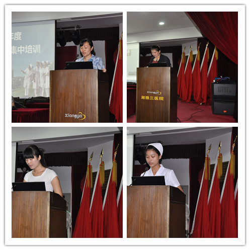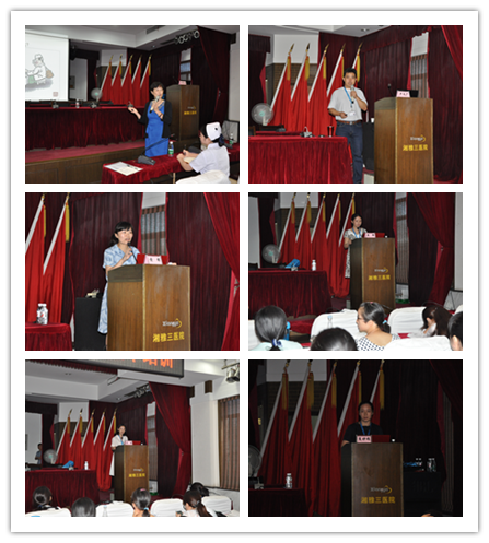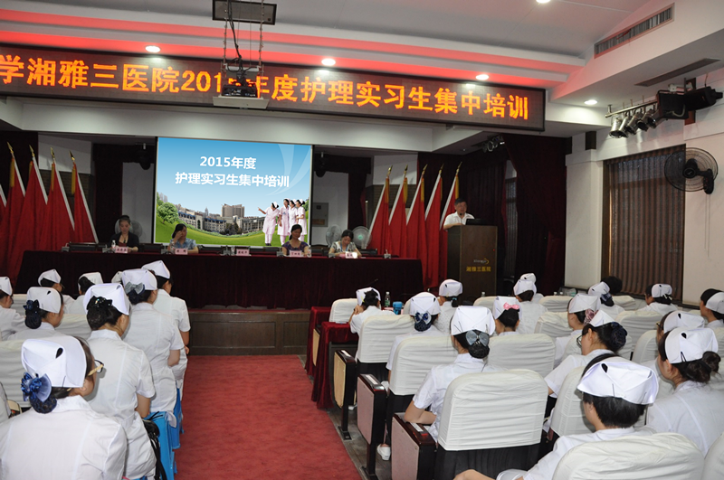 护理部丁四清主任代表护理部欢迎新鲜血液融入我院护理队伍,希望同学们珍惜来到“湘江西、麓山下、市府旁、大学边”的湘雅三医院的实习机会,充分利用这段时间来完善自己,对待患者要像亲人般关心、对待老师要注意尊重、对待同学要相处融洽,祝愿所有实习同学在这里收获学习,收获感动,收获友情。