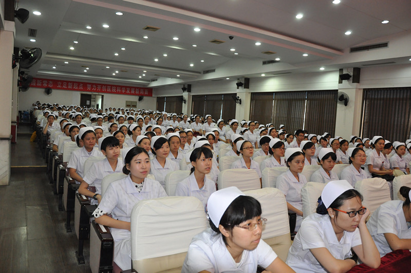 7月16日,我院2015年度护理实习生集中培训正式启动。副院长黄进华教授、护理部丁四清主任、手术中心石丹岳老师、2014年度实习生代表及2015年度335名护理实习生参加本次仪式。