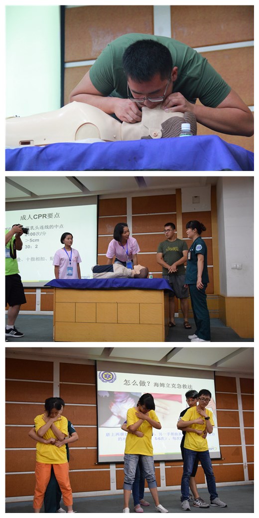 近日,受中国科协举办的科技夏令营邀请,我院团委与120急救中心联合为200多名高中生营员上一了堂别开生面的急救知识培训课,急诊科龙燕琼护士长结合理论与实际展开了培训。