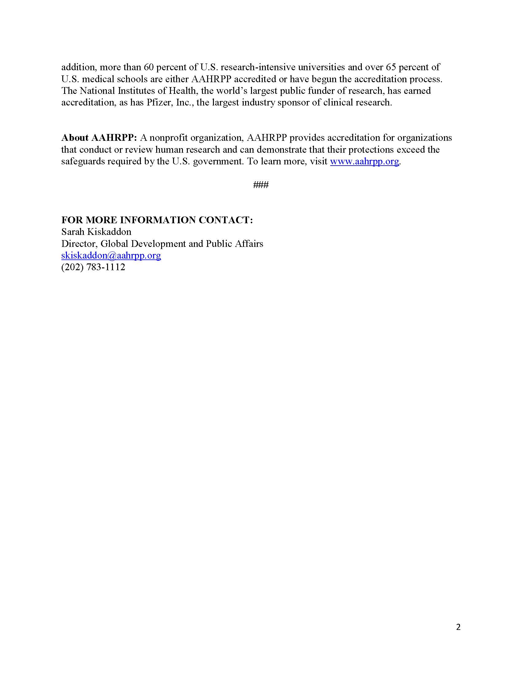 附:人体研究保护体系认证协会(Association for the Accreditation of Human Research Protection Program, AAHRPP)成立于2001年,旨在促进高质量和规范的临床研究。AAHRPP代表了全球人体研究水平的最高准则,迄今全球已经有包括NIH在内的215家医疗教学机构获得了AAHRPP认证。