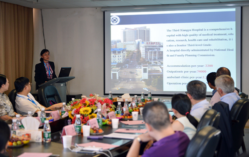 雅礼协会代表团有Mike Packevicz、Robert Rohrbaugh、Barry Wu、Lei Chen、Lucy Yang,中南大学医管处陈翔处长、姜新雅副处长,湘雅三医院陈方平院长、罗爱静党委书记及相关职能部门负责人、临床科室主任、项目主管、住院医师代表等出席了座谈会,会议由黄进华副院长主持。