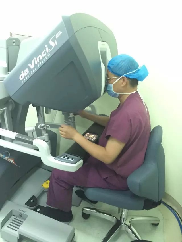 朱晒红教授专注操作机器人为患者手术