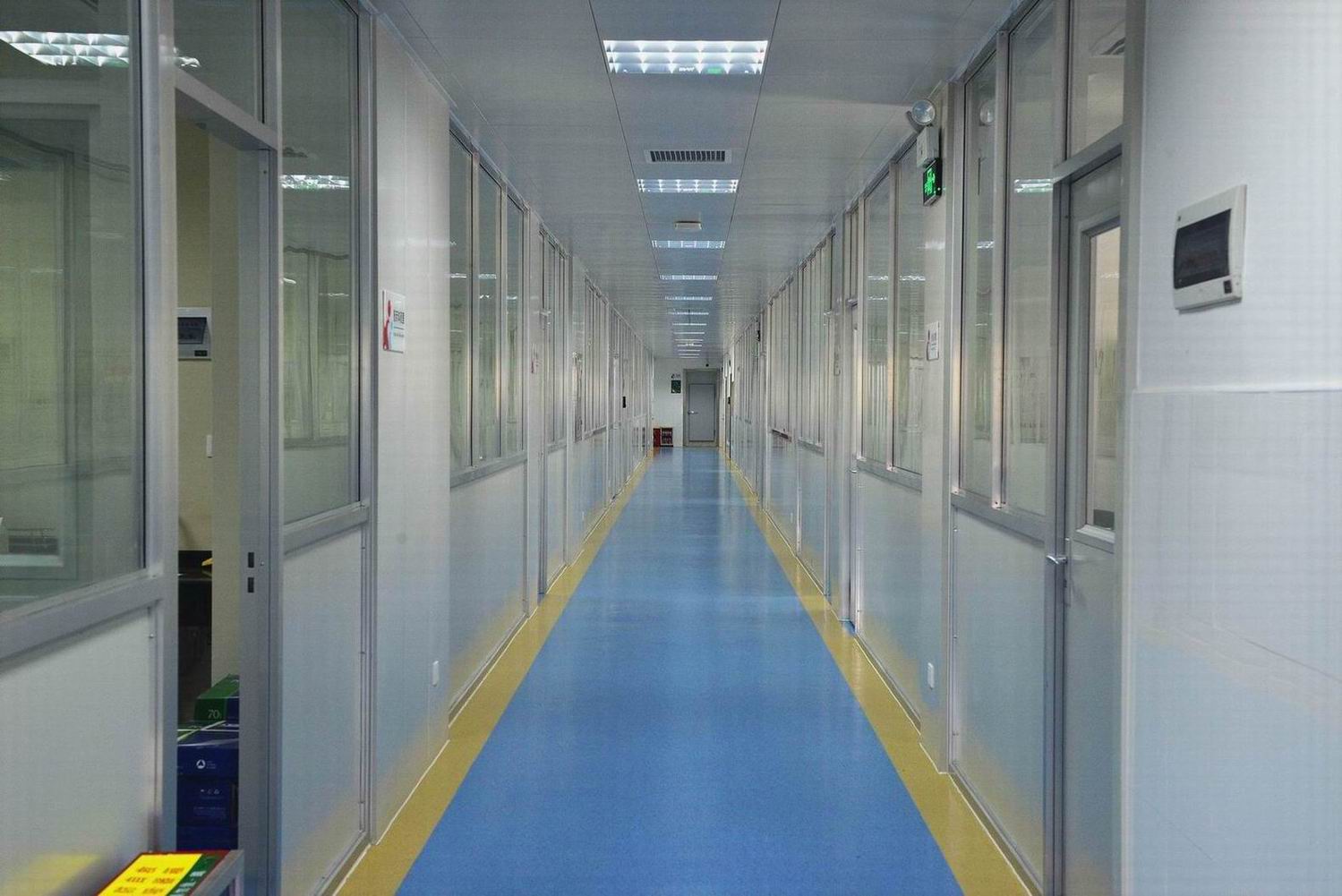 检验科的整体布局按照医学实验室生物安全标准,在科室内部划分污染区、半污染区和清洁区并有清晰标示,流程科学合理,做到无交叉污染。清洁区包括:办公室、会议室和更衣室。半污染区主要为实验室的公共走廊,工作人员必须穿工作服在此区域行走。污染区包括各实验室,工作人员进入实验室必须按照微生物安全二级防护。