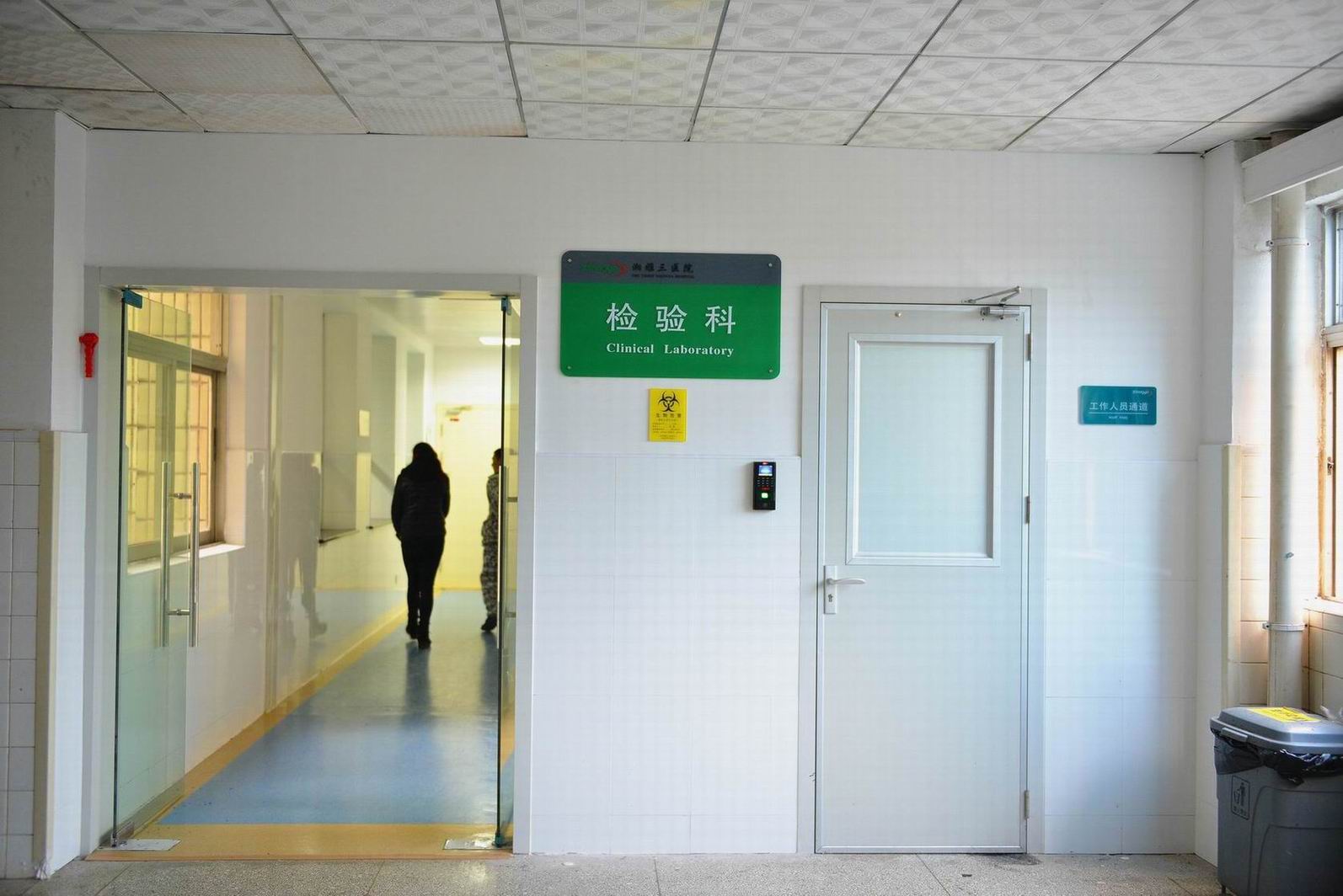 整个检验科人流和物流各为一体,减少交叉重叠。检验科设置门禁系统,并设有工作人员通道及物流通道,物流通道经标本接收室窗口统一接收标本,非工作人员未经允许不得进入实验室。