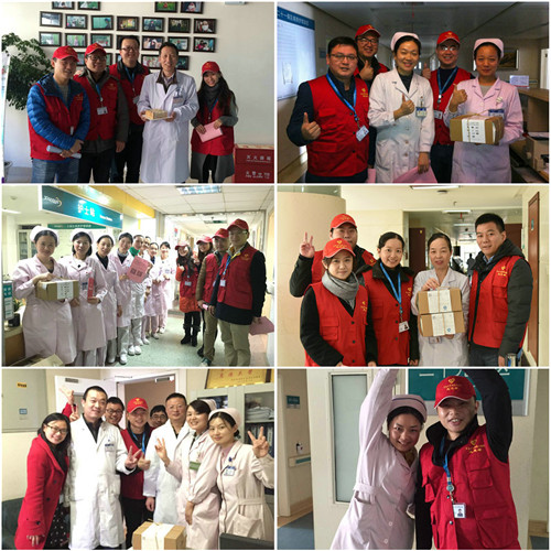 感恩节当天,“关爱临床一线”志愿服务队的志愿者们来到病房,给临床一线的白衣天使们送去了一份小小的温暖。志愿者们带着蛋糕来到门急诊和各病区,一声声“辛苦了”让医护人员欣喜而感动,护士姐妹们吃着蛋糕,表示甜到嘴里,暖到心上,被这样小小的惊喜感动了。有人形容这蛋糕是暖心的“星星之火”,我们希望将这星星之火传遍三院,大家带着感恩之心更好地工作,用爱的暖流温暖病患。
