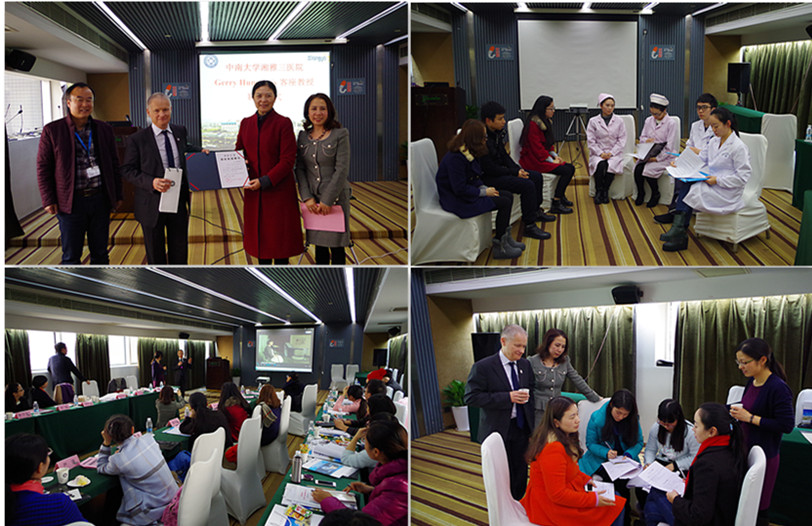 仪式结束后,Gerry教授就医患沟通理论学习、技能提升做了精彩的学术讲座,并且结合视频教学、角色扮演、情境模拟等方式对参会人员进行了培训。临行前,Gerry教授与Yuefang Zhou博士还到我院ICU观摩了家庭会议,参观了临床技能中心,就项目执行提了许多可行性建议。