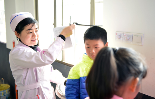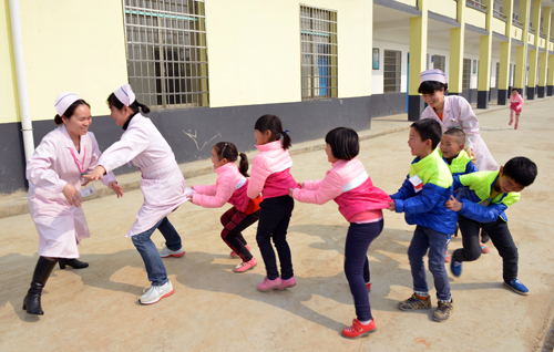 仪式结束后,儿科赵玲玲教授带领儿科医生们有序的为孩子进行了常规体检及先心病筛查。通过此次体检也及时发现了数位身体发育不良患儿及两位先心病患儿,并将此情况反映给了校长,肖校长表示会尽快与家属取得联系,我院儿科也将继续关注这几位孩子的健康状况。