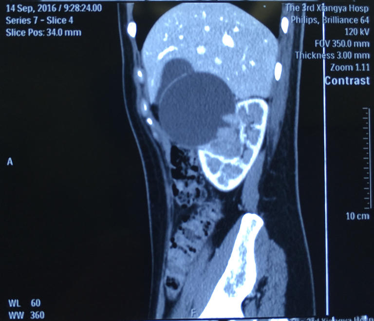 肾脏部分切除即只切除肾肿瘤而保留正常肾脏,但这一治疗方案要求医生对个体肾脏解剖结构有极高的了解。为了从普通双肾CT片中了解更多更直观的信息,医生通过将双肾CT的信息输入电脑中,利用3D打印技术精准复制该患者的肾脏结构并打印了患者的肾脏模型。术前医生即可清晰地看到肿瘤的位置、肾脏血管的分支及走行的方向等解剖结构。