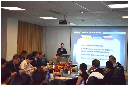 会上,黄进华副院长代表医院对雅礼协会专家们的到来表示了热烈的欢迎,并简要介绍了最近一年的我院住培工作的最新进展。住培部姚晨姣主任重点介绍了我院在全省率先建立实行的具有湘雅三医院特色的“四大创新举措”,即课程设置新增以案例分析启发式教学为主轴的“三不五习惯医患沟通模式”课程培训、构建实行信息化双盲性多方位全流程评估反馈体系、以考训双轨、考官负责制、考官库遴选为重点的临床基本技能考核体系和多维度高标准OSCE站点式院内结业考核体系。