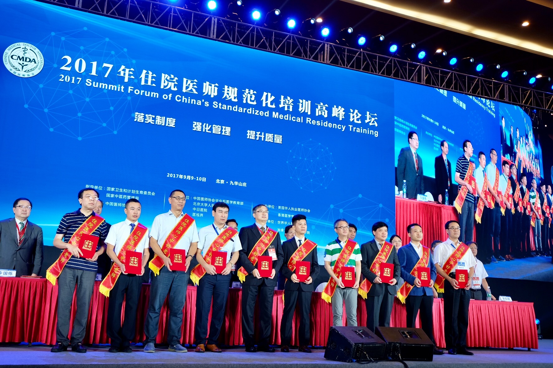 9月9日,由国家卫生和计划生育委员会、国家中医药管理局指导,中国医师协会主办的“2017年住院医师规范化培训高峰论坛”在北京九华山庄召开。中南大学湘雅三医院在会上大展风采:急诊科专业基地主任杨明施教授荣获全国百名“优秀专业基地教学主任”称号;急诊科左钰老师荣获全国百名“住院医师心中好老师”称号,并作为获奖代表上台发言;皮肤科专家黄进华教授、住院医师培训部姚晨姣主任分别做专题汇报和主题演讲。