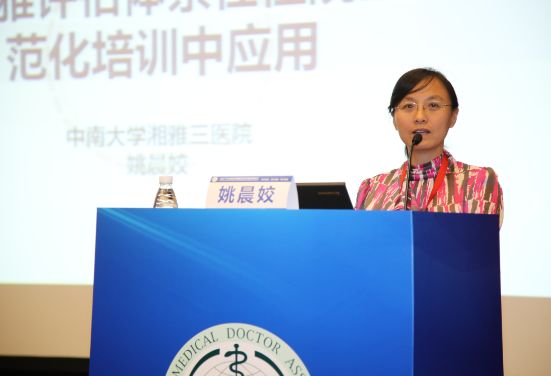 在“住培评估与应用”分论坛中,住院医师培训部主任姚晨姣就“耶鲁-湘雅评估体系在住院医师规范化培训中应用”做了主题演讲。姚晨姣主任详细介绍了医院住院医师评估体系的发展、内容、运用及存在的问题。她强调,评估反馈做得好,可促进培训质量螺旋式上升,是培训工作中重要的环节。